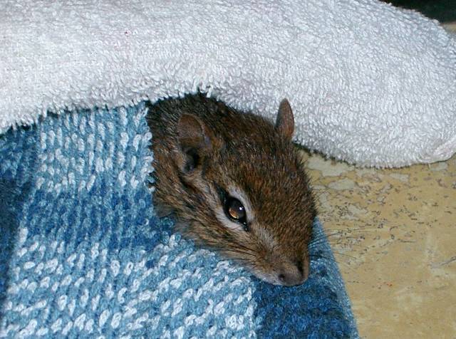 chipmunk began to perk up. We had a bucket ready for it, to ease